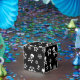 Skull and crossbones with pretty snowflakes and stars against a black background.