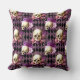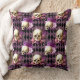 Skulls and Violet Flowers on Harlequin Background Cushion