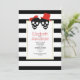 Skull couple black, white stripes Halloween red wedding invitation. A fun black skull couple with a red bow and hat paired with an elegant black and white pattern border are the elements of this trendy and modern invitation.