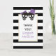 Elegant black and white stripes and a couple made of skulls are the elements of this modern wedding Thank You photo note card. Your text is in a white frame. The skull couple is of black colour and the groom has on a purple hat and the bride a bow.