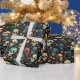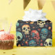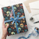 Celebrate Halloween in style with our vibrant Halloween wrapping paper featuring a striking black background adorned with colourful, intricately decorated skulls in orange, red, blue, and white. Intertwined with whimsical orange and yellow flowers and leafy vines, this eye-catching pattern offers a perfect blend of edgy and playful for all your spooky gift-giving needs. Ideal for parties, gifts, and seasonal decor!