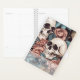 This design features skulls with pink flowers and blue leaves. It has a transparent section specifically for personalization. The line and color, as well as the font, text, and color may all be changed to suit your needs.