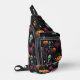 A funky skulls and pumpkin Patterned sling bag. A great gothic spooky design that features orange pumpkins, blue skulls and large candles all on a black and purple background. A great way to add a stylish splash of moody goth to your slingbag. Add an initial for a monogrammed gift.
