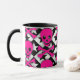 This Emo coffee mug features a pink skull & bones star pattern graphic art image.