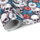 Goth needn't be all black and gloomy! Here are some human skulls nestled amid lovely red and white flowers with blue foliage. Great for birthdays, anniversaries, Goth-themed weddings, or any other occasion.