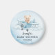 These adorable baby shower favour magnets feature a sweet watercolor teddy bear pilot flying a blue aeroplane through dreamy clouds. A charming keepsake that guests will love to take home and display, this customisable magnet allows you to add the mum-to-be’s name and shower date. Perfect for a baby boy or gender-neutral celebration, these magnets make thoughtful baby shower favours that combine practicality with a whimsical touch