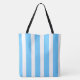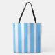 Sky Blue and White Cabana Stripes Tote Bag