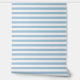 Sky Blue and White Classic Horizontal Stripes Wallpaper