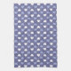 This kitchen towel features an argyle pattern of sky blue and white hearts on a dark blue background.