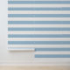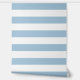 Sky Blue and White Wide Horizontal Stripes Wallpaper