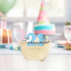 Sky Blue Birthday Number | Black 3D Name Date Stemless Wine Glass