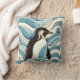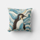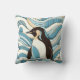 Sky Blue Cream Ocean Waves And Cute Penguin Cushion