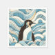 Sky Blue Cream Ocean Waves And Cute Penguin Napkin