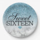 Sky Blue Faux Glitter/Marble Sweet 16 Paper Plate