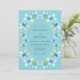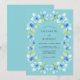 A serene and delicate design featuring a graceful wreath of sky blue blossoms and soft green foliage. This artwork evokes a tranquil, romantic atmosphere, perfect for a sophisticated and airy union.