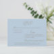 Sky blue Wedding RSVP card. Three Entrees option. Website option for RSVP. Modern Font. Gold text.