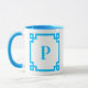 Sky Blue Greek Key Border Monogram Mug