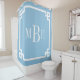 Sky Blue Greek Key Border Monogram Shower Curtain