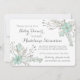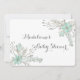 Personalised baby shower invitations in vintage and rustic spring pastel turquoise aqua teal blue and grey flowers illustrations.