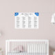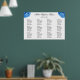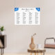 Large seating chart poster with blue hydrangea flowers. "Sky Blue" realistic floral images decorate the top corners on white paper. Names of the couple in script across the top with date and location beneath and templates to seat eight guests per table, at up to twelve tables. Customise the table number and list guests beneath each one. Remove sections if fewer tables are needed. This is an upgraded paper with other options to choose from which may lower the price.