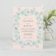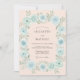This design features a soft wash of pale apricot as a backdrop for a delicate arrangement of watercolor roses. The flowers are rendered in a light aqua blue hue, complemented by muted sage green leaves and stems. The overall aesthetic is romantic and airy, evoking a serene spring morning atmosphere. This botanical composition creates a peaceful and elegant visual for a seasonal ceremony.