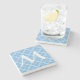 Sky Blue Moroccan Damask with Monogram Stone Coaster