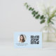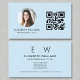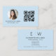Sky Blue QR Code Photo Monogram Minimalist Business Card