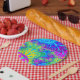 These colourful fractal paper plates has bright and vibrant neon colours such as sky blue rainbow. These paper plates can be used for birthday parties, celebrations and other special events. You can choose the size of the paper plates before purchasing. Check to see if matching party hats and napkins are available for this specific design to match the paper plates.