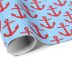 Sky Blue, Red Anchors Pattern Wrapping Paper