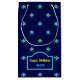 A vibrant navy blue gift bag featuring a sky blue robot pattern. This gift bag has a customisable receiver’s name included.