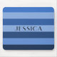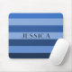 Mouse pad with a sky blue monochrome striped pattern with personalised name print in the centre. Type your name in the template field to personalise. Matching computing accessories available.