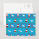 Sky blue unicorns santa claus pattern holiday postcard