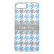 Sky Blue White Dk Grey Houndstooth Name Monogram Case-Mate iPhone Case