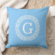 Sky Blue Wht Greek Key Rnd Frame Initial Monogram Cushion