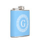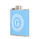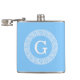 Sky Blue Wht Greek Key Rnd Frame Initial Monogram Hip Flask