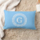 Sky Blue Wht Greek Key Rnd Frame Initial Monogram Lumbar Cushion