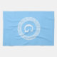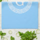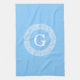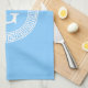 Sky Blue Wht Greek Key Rnd Frame Initial Monogram Tea Towel