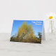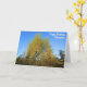 This birthday card presents a vibrant autumn scene of sunlit trees adorned with yellow and green leaves set against a flawless blue sky. Make it special with options to personalize the front, inside, and back.