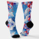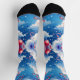 The Sky Full of Freedom Socks feel like a summer soundtrack brought to life. Set against a bright blue sky filled with drifting clouds, fireworks bursts, streamers, confetti, and bold red, white, and blue balloons, this design pulses with rhythm and movement. It is the visual equivalent of a marching band crescendo, a drumline echoing down Main Street, and fireworks cracking in perfect time with the music.