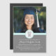 Customisable magnetic graduation party invitation template card in chic and elegant light aqua turquoise sky blue, dark charcoal grey and white modern design.