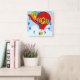 Sky High Rainbow Red Balloon Cartoon Art Square Wall Clock
