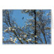 a bird on the blue sky over blossoming tree