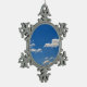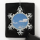 Sky is blue and white clouds are passing by snowflake pewter christmas ornament
