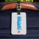 I was happy with the acrylic tag but it came with a thin leather strap to attach the tag to luggage (like a cat collar). I replaced the strap with a metal ring off of a key ring as the leather strap would come undone or break easily as luggage is sometimes handled without much care by airlines. Printing is great. Colours and positioning of the design I put on the tag were perfect. Very pleased.