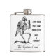 The flask itself is fine. It’s a cheap flask, obviously bought in bulk, however am prepared to overlook that. Given that it is a personalized item, I would have liked to have seen gift boxing instead of the generic packaging. Terrible printing, and/or quality. It’s a cheap, tacky vinyl. It is not cut straight and is also applied in a way that it is overhanging the bottom, causing the glue to catch on items and it will eventually roll and tear, damaging the wrap.