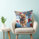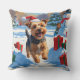Skye Terrier Running in Snow with Christmas Hat Cushion