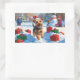 Skye Terrier Running in Snow with Christmas Hat Rectangular Sticker
