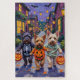 Adorable Skye Terriers dressed in playful Halloween costumes carry pumpkin buckets while trick-or-treating under the moonlit sky. This festive design highlights the breed’s long flowing coat, perky ears, and loyal personality, perfectly capturing the spooky yet fun atmosphere of Halloween night. A heartwarming celebration for Skye Terrier lovers, dog enthusiasts, and Halloween fans alike.