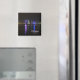 Square souvenir fridge magnet with the illuminated skyscrapers in the skyline of the commercial centre of Doha, the capital of the Arabian Gulf country Qatar at night and the text: 'DOHA, QATAR'. A great souvenir!