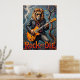 This captivating painting features a lion, complete with sunglasses and a leather jacket, deeply immersed in an electric guitar solo atop a bare, windswept tree. A textured blue and white sky fills the background. The vibrant, textured brushwork creates a lively and exhilarating atmosphere, perfectly conveying the "Rock or Die" vibe of this unique, untamed performance against the skyline.